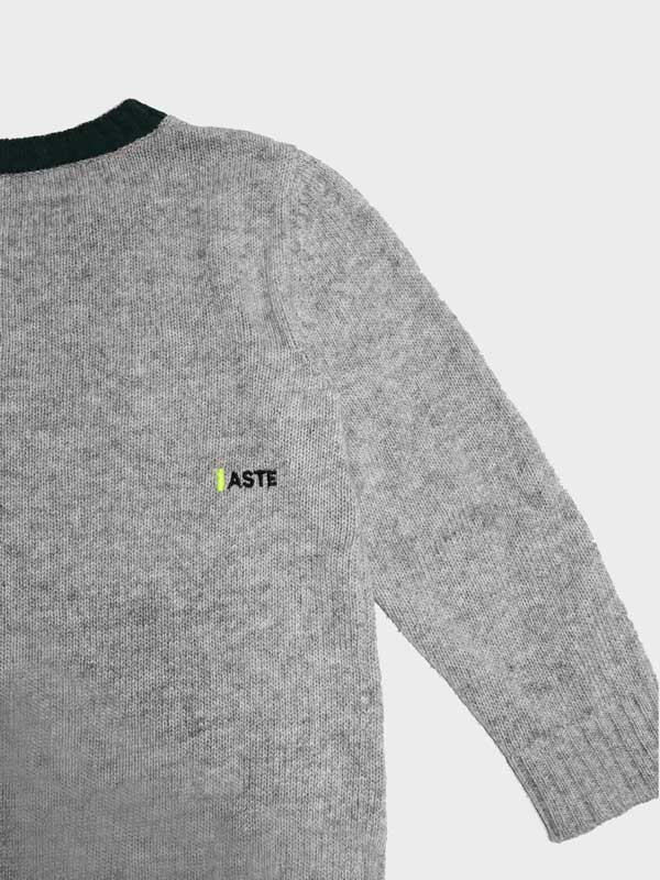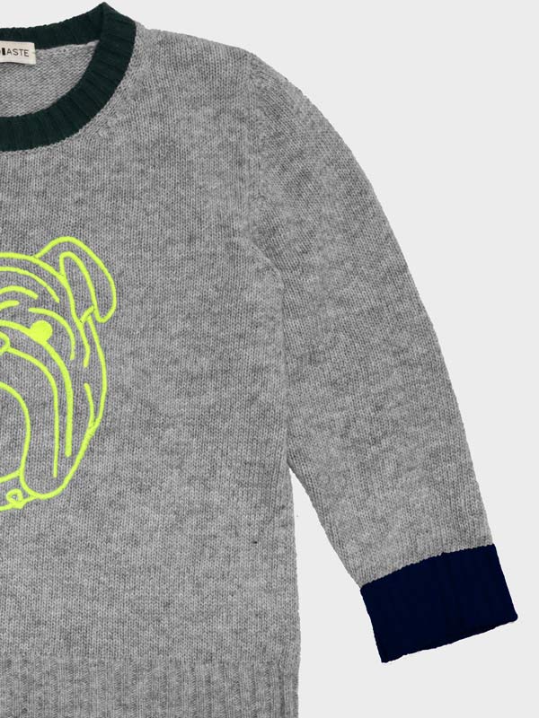 Crew-neck sweater in cashwool with fluo embroidery and contrasting details on the cuff and neck.