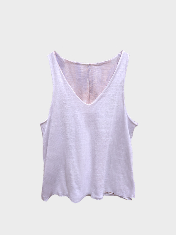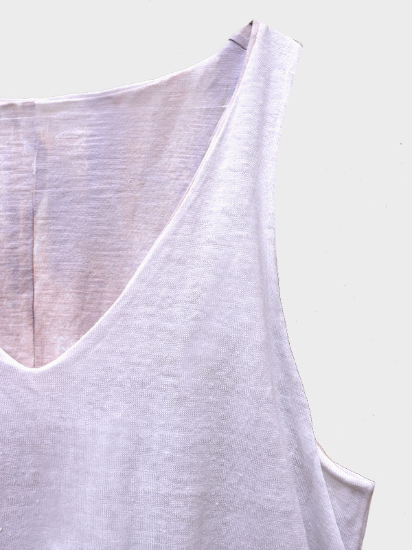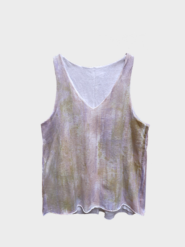 Double tank top in pure slub cotton and linen. The double possibility of wearing it gives a sparkling and refined look with hand-painted cotton, and a fresher and more delicate look with our 100% linen.