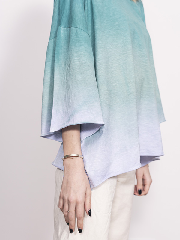 This garment has been individually hand dyed to achieve a unique color effect. Each single piece can be different from one another and show some irregularities, a hallmark of an artisanal process.