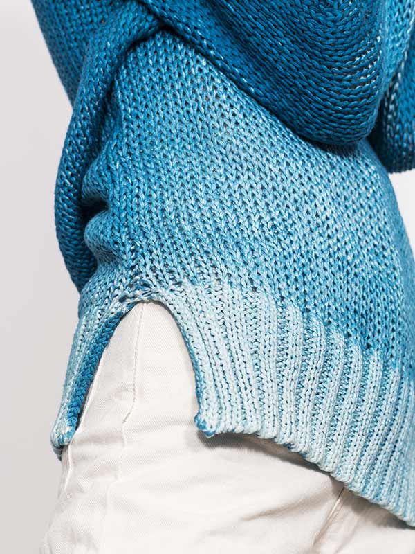 This garment has been individually hand dyed to achieve a unique color effect. Each single piece can be different from one another and show some irregularities, a hallmark of an artisanal process.
