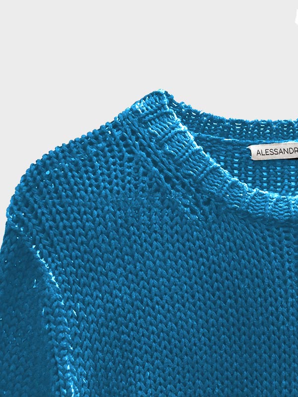 Crewneck sweater knitted on medium gauge 8 in Egyptian mako cotton.
