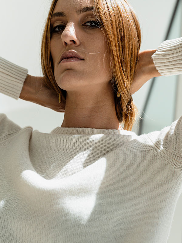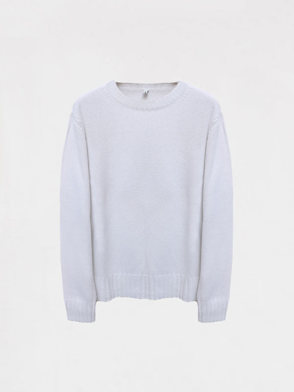Maglia spessa lavorata su finezza 8 girocollo in soffice 100% cashmere.