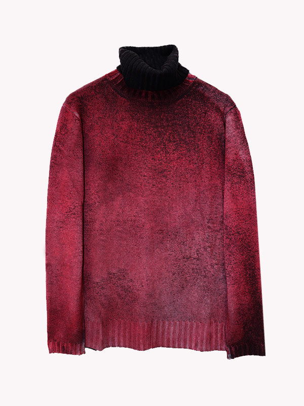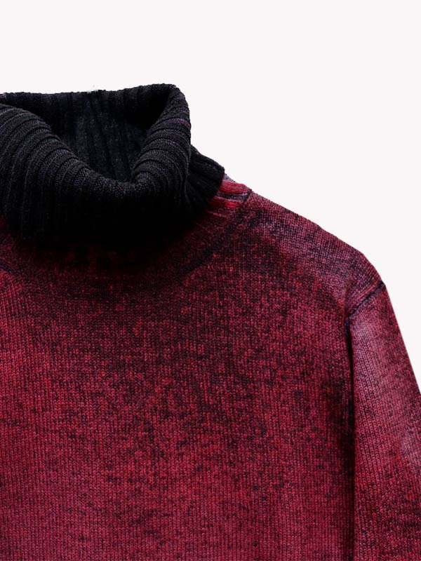 Maglia spessa lavorata su finezza 8 in dolcevita con spacchi su polsi e fondo.
