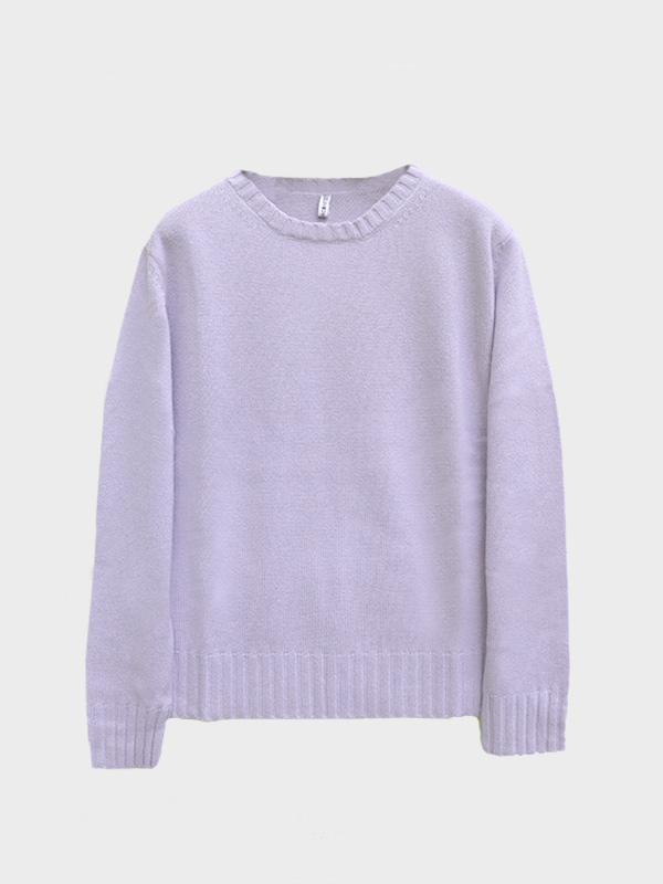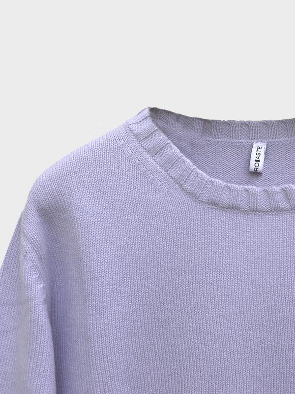 Maglia spessa girocollo lavorata in maglia rasata con coste larghe sul collo e bordi con spacchetti laterale sul fondo.