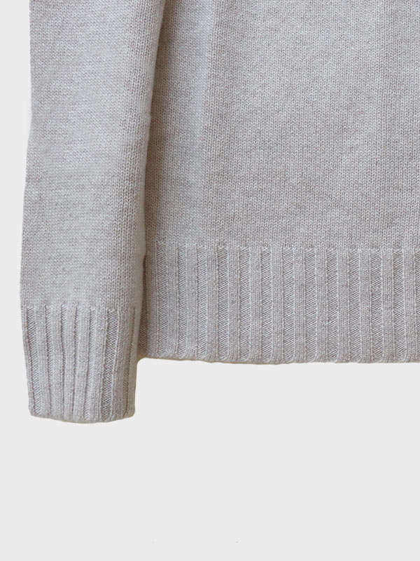 Maglia spessa girocollo lavorata in maglia rasata con coste larghe sul collo e bordi con spacchetti laterale sul fondo.