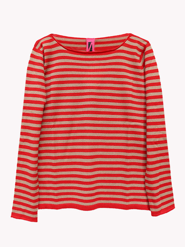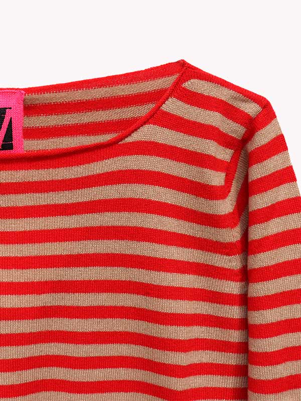 Maglia scollo barchetta a righe lavorata su finezza 12.
