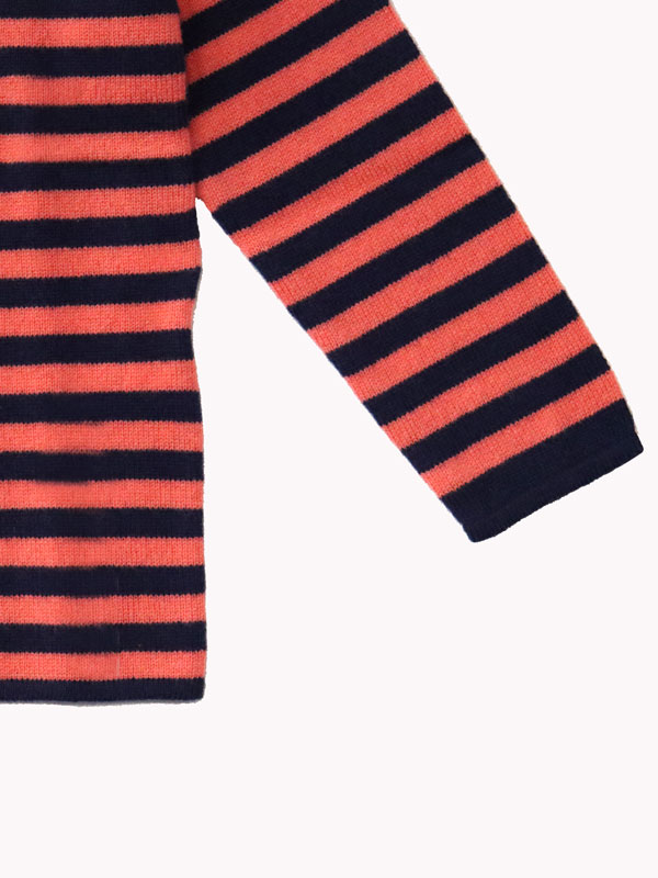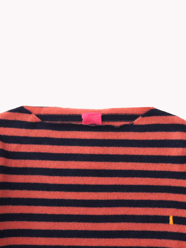 Maglia scollo barchetta a taglio vivo in misto cashmere con dettaglio sul petto in contrasto Arancio fluo, simbolo distintivo Alessandro Aste.