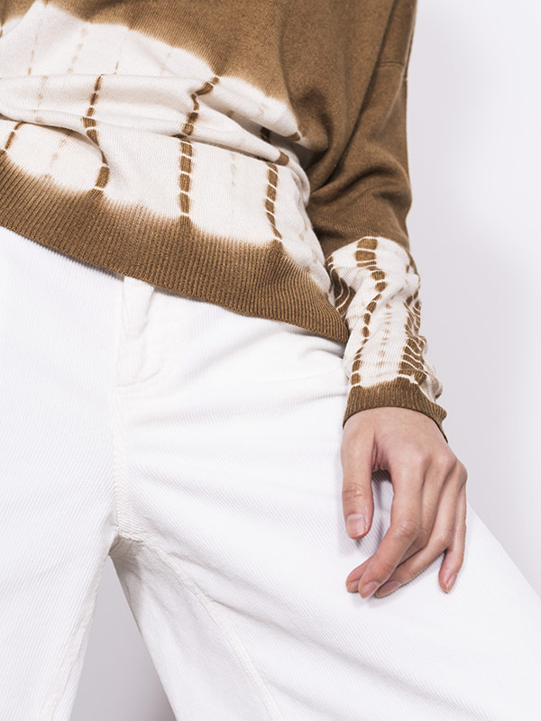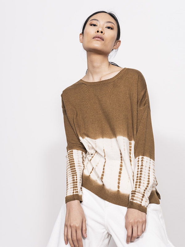 Questo capo è stato tinto a mano individualmente per ottenere un effetto colore unico. Ogni singolo pezzo può risultare diverso uno dall’altro e mostrare alcune irregolarità, segno distintivo di un processo artigianale.