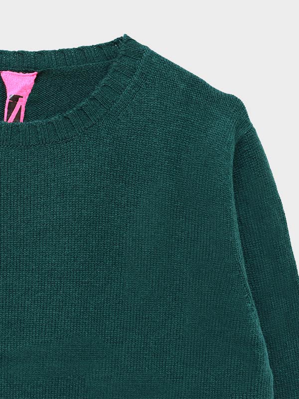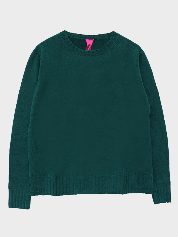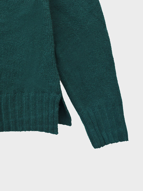 Maglia girocollo spessa lavorata su finezza 8 con spacchetti laterali.